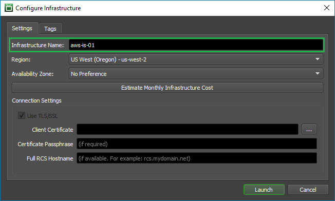 Set the Infrastructure Name to a name you’d like to use to refer to the new infrastructure.