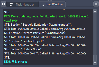 - Stats - Errors, Warnings, Progress and Stats messages will be displayed. Stats messages are prefixed by “STS:” and are displayed in White by default.